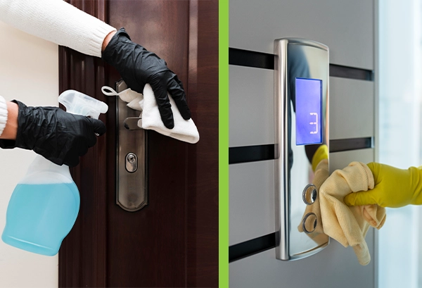 Il faut désinfecter en priorité tous les objets manipulés par plusieurs personnes. Mais la désinfection doit s’étendre à d’autres surfaces. Voici ce qu’il faut désinfecter en priorité :